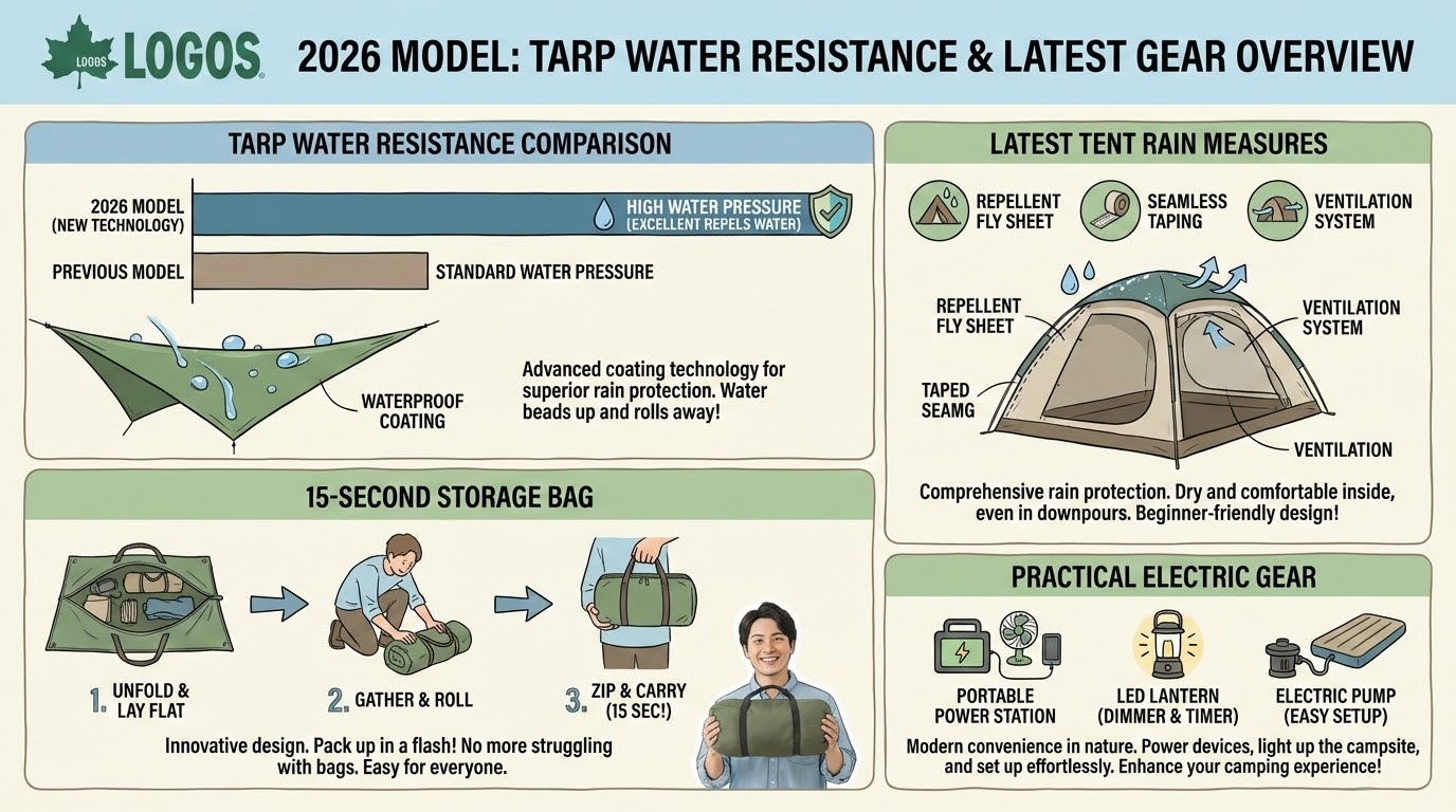 ロゴス 2026モデル タープ 耐水性 比較、結論:時短と快適さを追求した最新ギアが登場