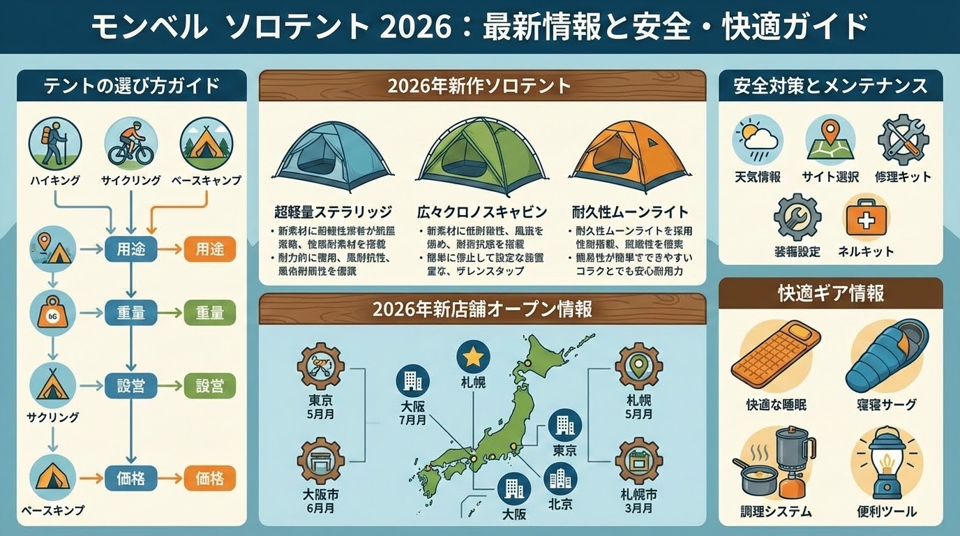 モンベル ソロテントを基点に、2026年は新作ギアや機能的なベースキャンプが増え、ソロキャンプの選択肢が広がります。軽量で高機能なマットや新素材ウェア、設備が整った拠点の登場は心強いニュースです。