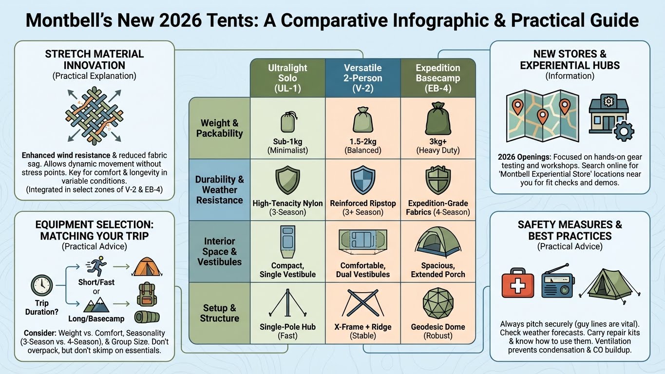 モンベル 2026 新作 テント 比較を参考に、伸縮性のある新素材や高規格サイトの存在を踏まえて自分に合った装備を選ぶと、キャンプの幅が広がります。伸縮する新しい防水ジャケットは動きを支え、高規格サイトは試しやすさを提供します。まずは身近な店舗で素材感を確かめ、実際に使う環境をイメージして選ぶのがおすすめです。