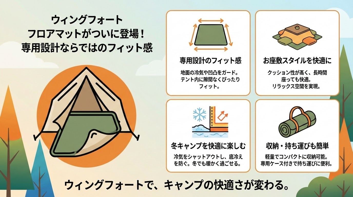 ウィングフォート専用フロアマットが登場!冬キャンプも快適になる秘密を解説