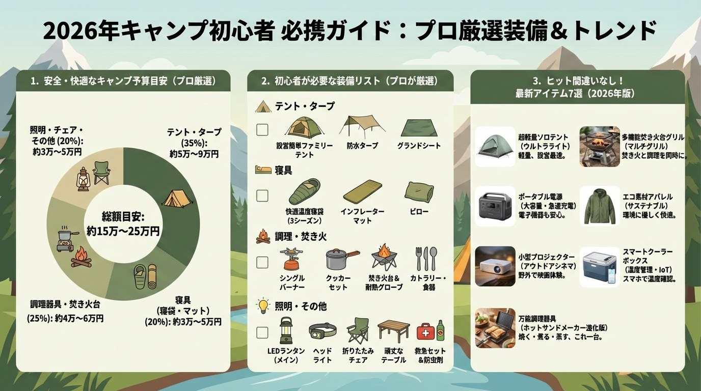 • 対象読者:2026年にキャンプデビューを考えている初心者、装備を新調したい方