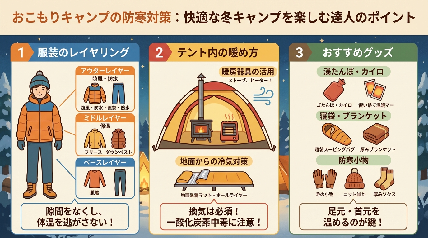 おこもりキャンプの防寒対策!冬も快適に過ごすコツ