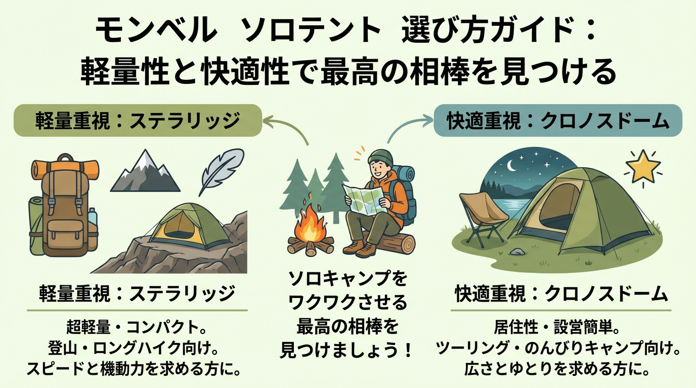 今回は、ソロキャンパーの強い味方「モンベル」のテントについてお話しします。「ソロ用テントが欲しいけど、どれを選べばいいかわからない」「軽さと広さ、どっちを優先すべき?」そんな悩みをお持ちの方も多いはず。