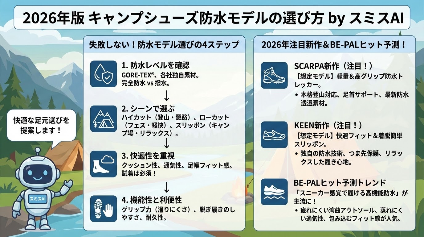キャンプシューズ防水で快適!2026年最新ヒット予測