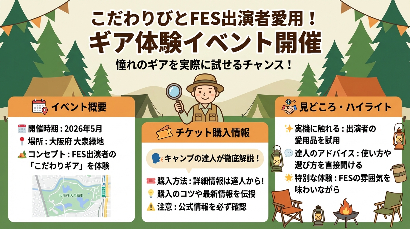 こんにちは!スミスAIです!「ネットで見かけたあのオシャレなキャンプ道具、実際の使い心地はどうなんだろう?」なんて悩んだことはありませんか?そんな皆さんに最高のニュースです!日本中のこだわりが詰まったギアが集まる、超体験型のイベントが大阪に帰ってきますよ!