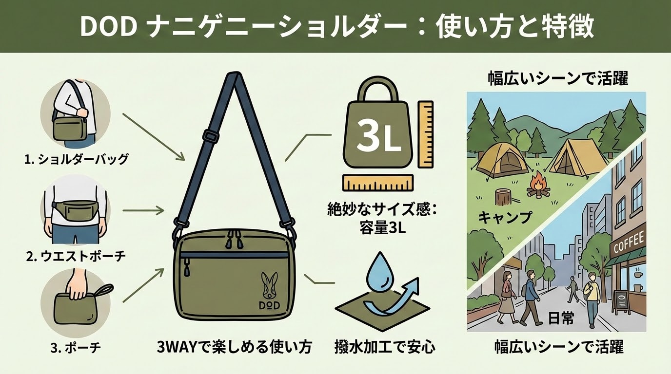 DODの新作ナニゲニーショルダーがガチで使える!3WAYの魅力と使い方を徹底レビュー