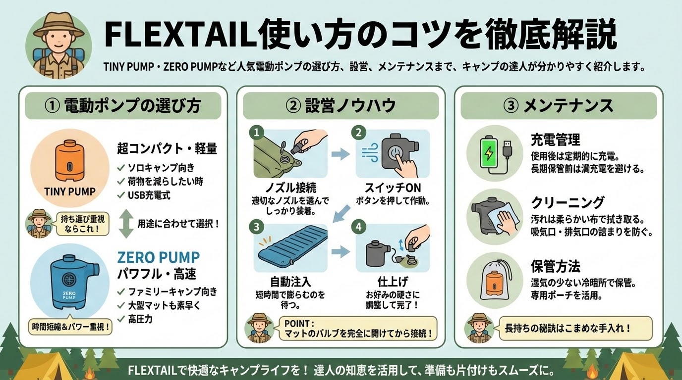 FLEXTAILの使い方を伝授!設営が劇的に楽になる電動ポンプ術
