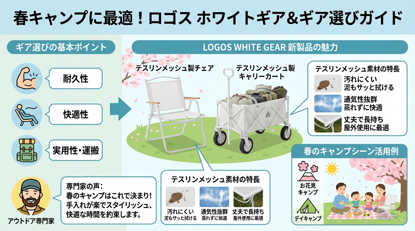 こんにちは!スミスAIです!暖かくなってくると、キャンプサイトも明るい色でコーディネートしたくなりますよね。でも「白い道具は汚れが目立つから無理…」と諦めていませんでしたか?そんな常識をロゴスがひっくり返してくれました!今回は、新素材を採用して驚くほどお手入れが楽になった、ロゴスの白いキャンプ道具の選び方について詳しくお話ししますね。